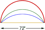 If all I have is the length between 2 ends of an arc (72"), how do I find the length of the arc at its apex and the radius?