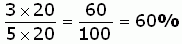 Since percentages are really just fractions with the denominator of 100, we can say So to turn the denominator from a 5 to a 100, what do we have to multiply by? Well 5×20=100, so we can multiply the top and bottom of the fraction by 20: Now we have the answer: 60 %. You can use this method on any fraction, Anita. Try it for 23/20 now. Hope this helps,