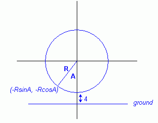 This means that the height is R + 4 - RcosA. where A is the angle from