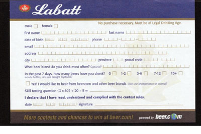 20 is divided by 5, not the whole sum (3 Leeanne These "skill testing" questions have always bothered me. I think that every one that I have seen is ambiguous. If they are going to use the rules of order that Leeanne quotes then why did they put parentheses around the "3 times 50"? The mathematically correct answer is what Leeanne says but I expect that the correct answer to the contest is whatever Labatt says it is.